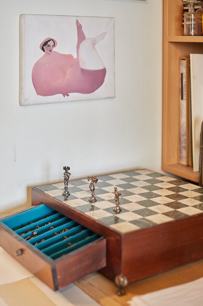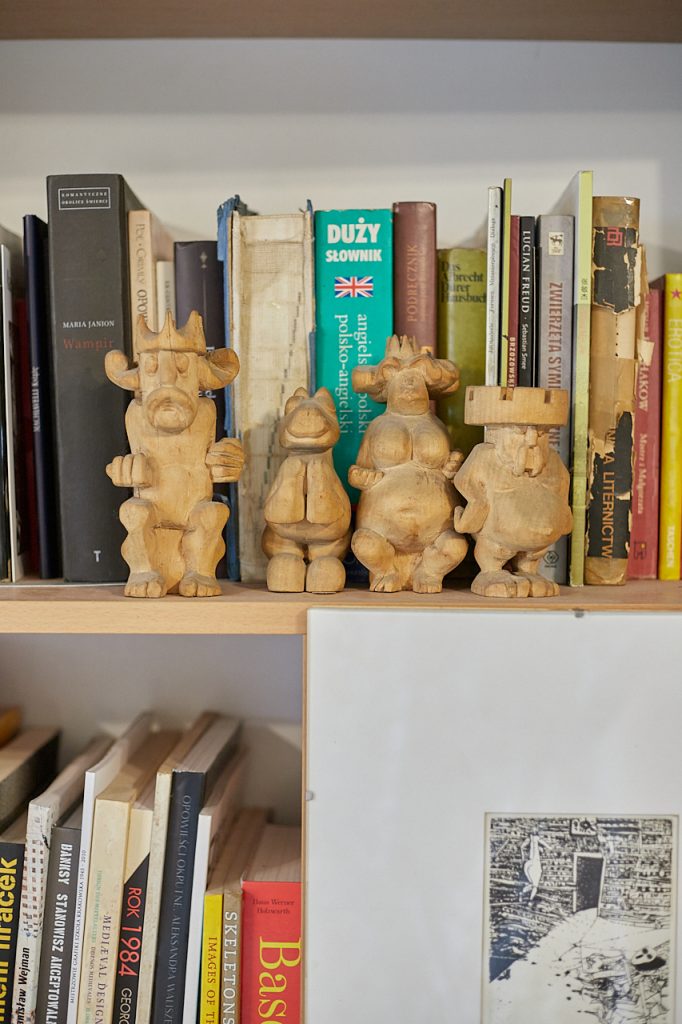 K.B.: Tę rzeźbę afrykańską dostałem od Krzysia Tomalskiego, maskę z Birmy od mojej kuzynki, kolejną maskę afrykańską od prof. Wejmana. Są też szachy, które wyrzeźbił ze srebra mój ojciec. Są skrzypce, które gdzieś zakupił. Szafę z kolei zrobił mój kumpel, z którym chodziłem do liceum Kenara w Zakopanem, w kształcie trumny. Kiedy już ją wykonał i postanowił mi ją podarować, okazało się, że nie zmieści się do windy, i musieliśmy ją we trzech wnieść po schodach na jedenaste piętro!