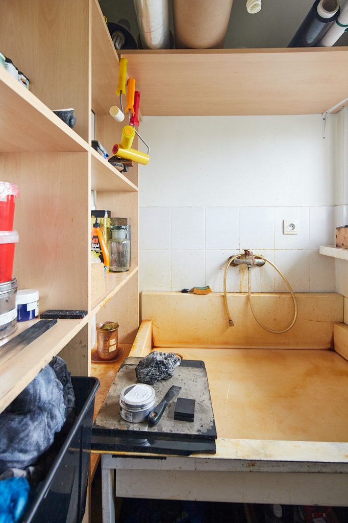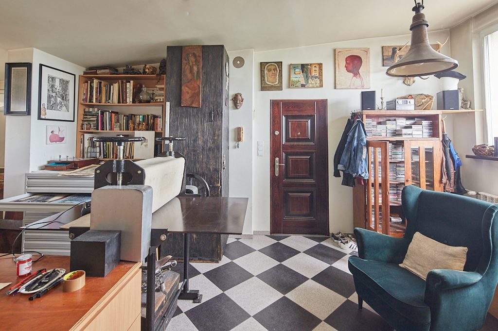 K.B.: Odziedziczyłem ją po ojcu, który był jubilerem. On z kolei otrzymał ją z tak zwanego przydziału ze Związku Polskich Artystów Plastyków, do którego należał. Kiedy przygotowywano projekt krakowskiego Osiedla Widok, przewidziano, że jedenaste (ostatnie piętra) w wieżowcach będą przeznaczone dla plastyków, a nawet Związek partycypował w kosztach ich budowy. Pomieszczenie jest doskonale przystosowane do pracy twórczej, dobrze oświetlone, z oknami na przestrzał, wystarczająco pojemne na wszystkie rzeczy, których potrzebuję do pracy.