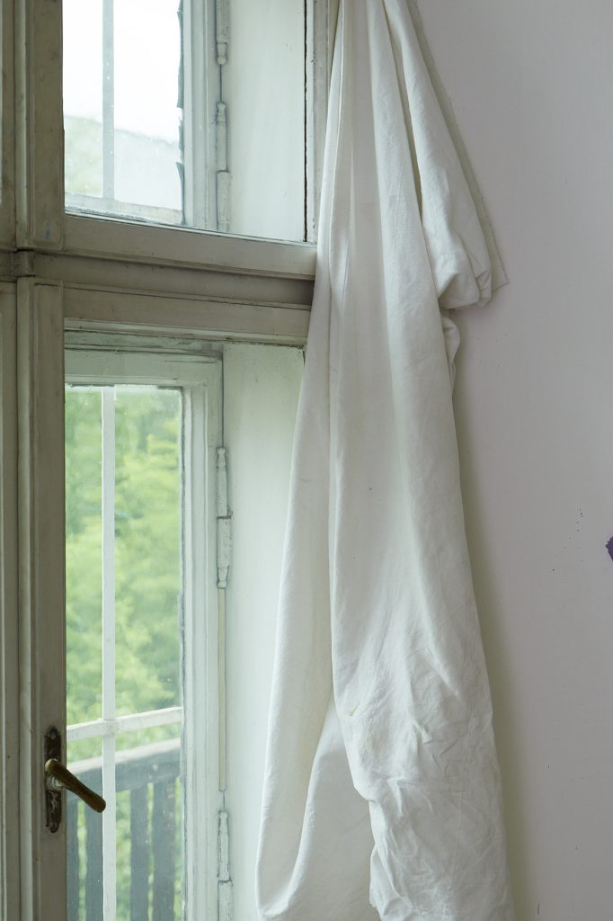 T.P.: Bardzo dobrze, rozgościłem się w tym miejscu, bardzo polubiłem tę przestrzeń. W ciągu dziesięciu lat pracownia się zmieniała albo raczej ja się zmieniałem, bo w zależności od momentu, w jakim byłem, przestrzeń nabierała innych znaczeń. Czasami czułem się w niej świetnie, zestrajałem się z pulsującym wewnątrz światłem, ruchem żywej zieleni w jakby zapomnianej, pozostawionej sobie przestrzeni, którą obserwuję z okna, z dźwiękami dzwonów klasztoru bernardynek połączonymi z muzyką Sigur Rós, a ja pracowałem i przy tej pracy tańczyłem. Ale były także momenty, kiedy czułem, że to ściany zamkniętego pomieszczenia i ogarniała mnie przygnębiająca samotność. Wracając natomiast do samego lokalu, wcześniej było to niewielkie mieszkanie, od kilku lat opuszczone. Wynająłem je jako pracownię. Dostałem pozwolenie na nasycanie ścian oraz podłóg malarską materią, odpadami tego, co wyszło poza płótno, ponieważ cała kamienica zostanie wyremontowana i stanie się hotelem.